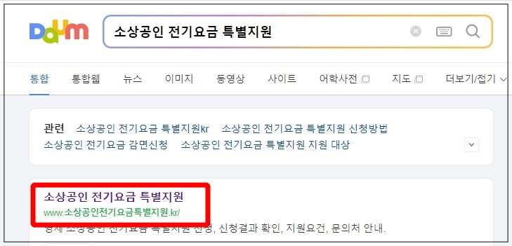 1. 다음이나 네이버 검색창에 소상공인 전기요금 특별지원 검색합니다.